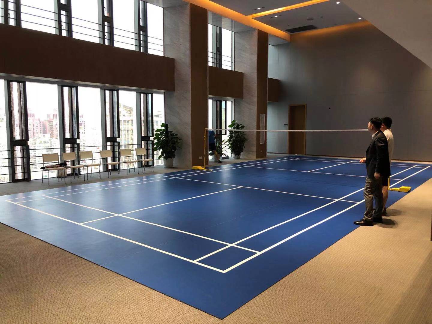 宝石纹:宝石纹羽毛球地胶内部采用玻纤无纺布和双向聚酯网格稳定层,有效保证地板不易拉伸变形、起泡等现象出现,表面纹路易于清理,颜色丰富多彩,表面亚光不会因阳光灯光反射影响运动效果。属于中高等产品,增加了稳定层网格,一般为营业性羽毛球场选择,常规厚度为4.5MM 宝石纹运动地胶一款性价比超高的多功能产品,乒乓球、羽毛球、网球、健身房等多种场所,100%纯PVC优质原料,科学的原料配比从本质上保证了产品各项性能参数的稳定,无论是回弹率、摩擦系数还是能量返还等保证在最佳的水平。